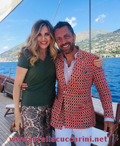 Lorella durante le riprese della trasmissione "Linea Verde - Grand Tour", luglio 2019 con Angelo Mellone