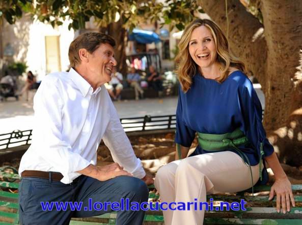 Lorella Cuccarini nel set della fiction "L'Isola di Pietro 2" nel 2018 con Gianni Morandi