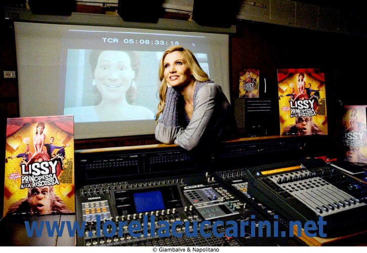 Lorella Cuccarini nel 2008 in sala doppiaggio del cartone animato "Lissy - Principessa alla Riscossa"
