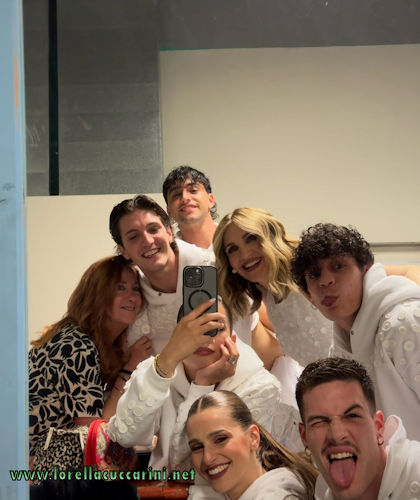Lorella con il balletto per le sue sigle all'evento "Tecnocasa" a Pesaro il 3 maggio 2025