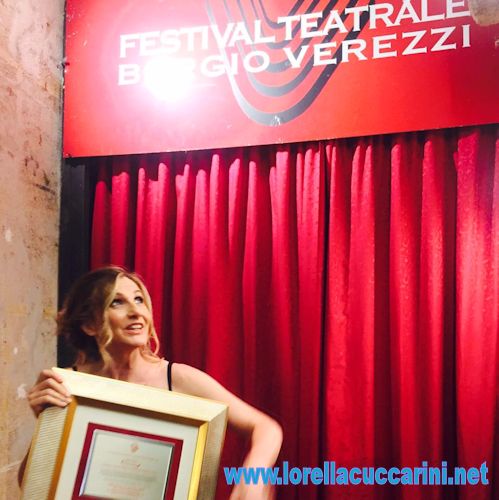 Lorella Cuccarini a Borgio Verezzi durante la premiazione, luglio 2018