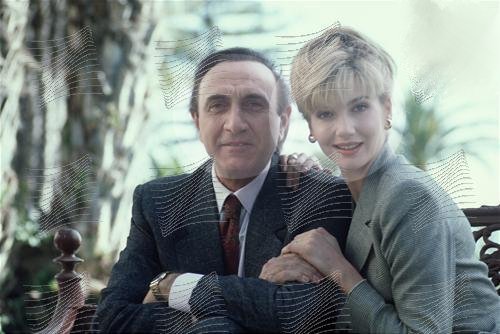 Lorella Cuccarini con Pippo Baudo alla conferenza stampa di Sanremo 1993