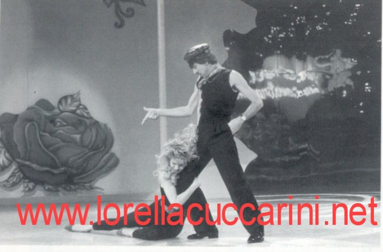 Lorella Cuccarini e Marco Columbro in una scena di "Grease" da "Una sera c'incontrammo" 1989